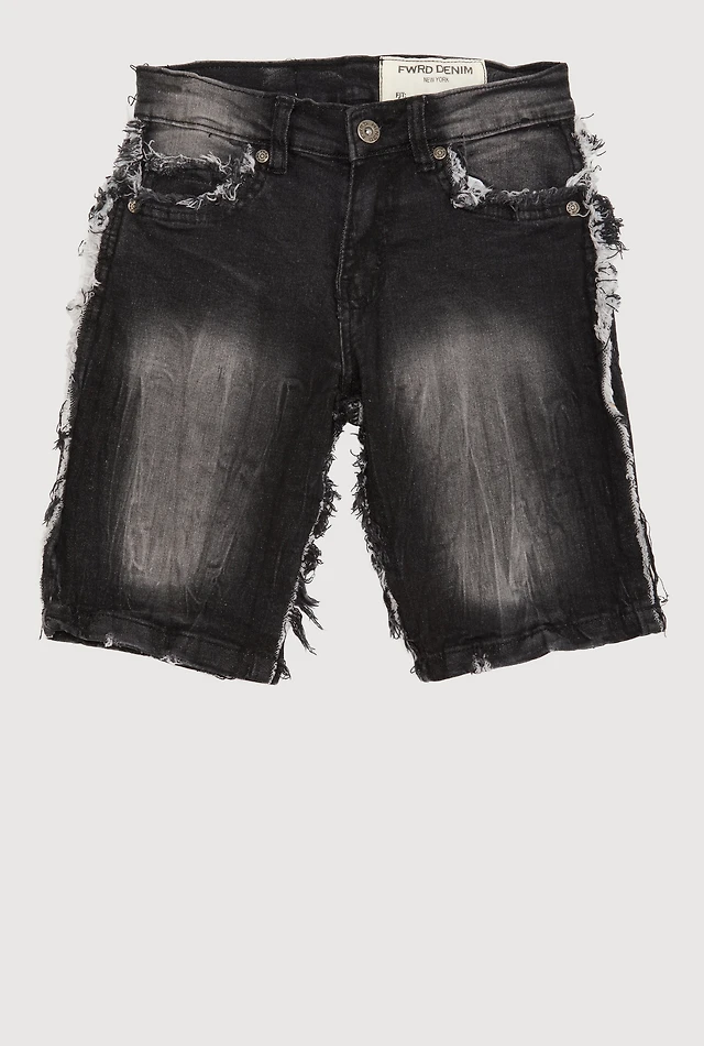 Boys Mineral Wash Frayed Denim Shorts, Black, Size 12