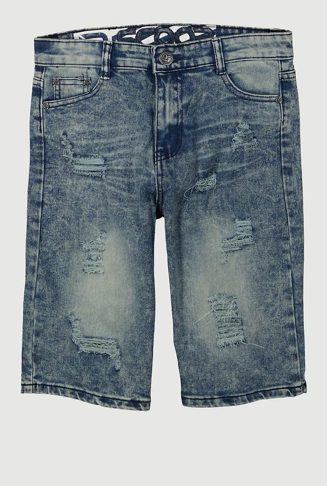 Boys Vintage Wash Whiskered Distressed Denim Shorts