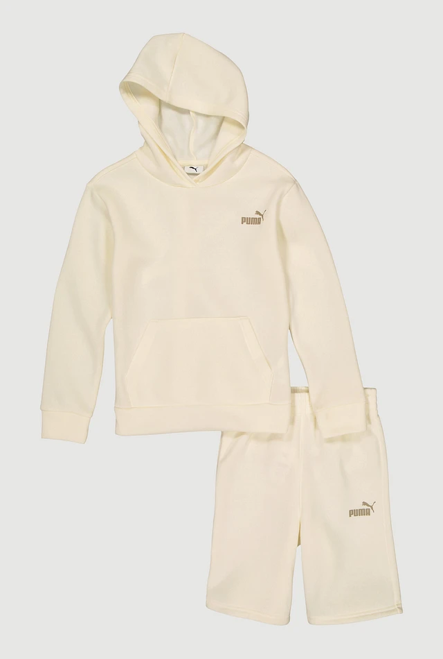 Boys Puma Hooded Sweatshirt and Sweatshorts, Beige, Size 14-16