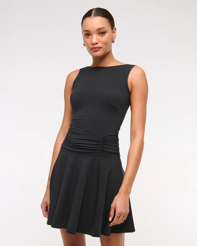 Bra-Free V-Neck Ruched Mesh Mini Dress