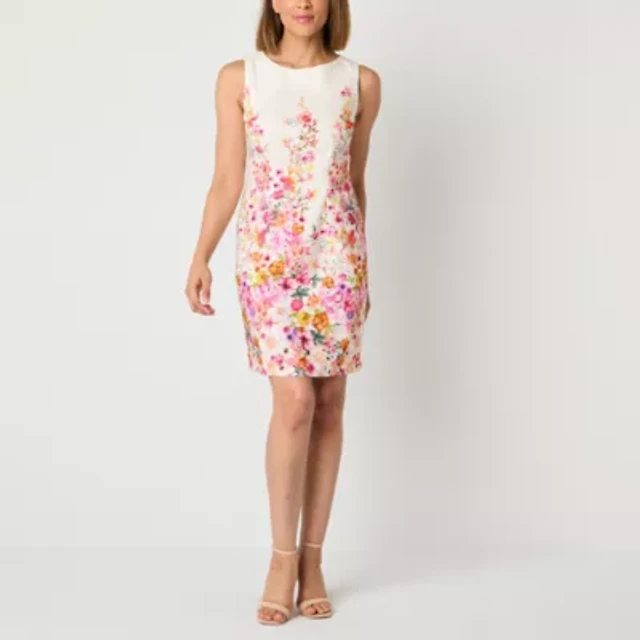 Brannan Womens Sleeveless Floral Sheath Dress