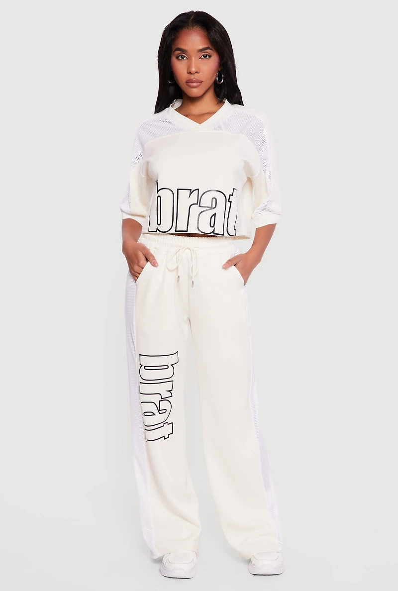Brat Graphic Drawstring Waist Wide Leg Pants