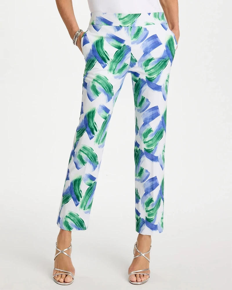 • Straight-leg, pull-on, cropped pants with comfort waist and slit hem detail.