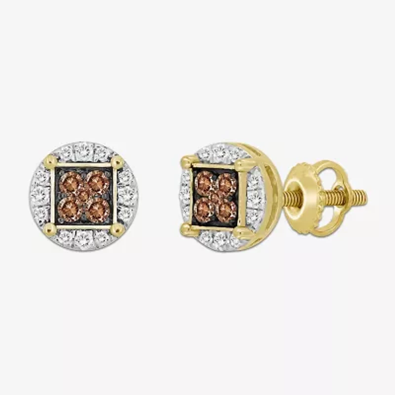 (Brown / I3) 3/4 CT. T.W. Natural Champagne Diamond 10K Gold 10mm Round Stud Earrings in San Juan, PR
