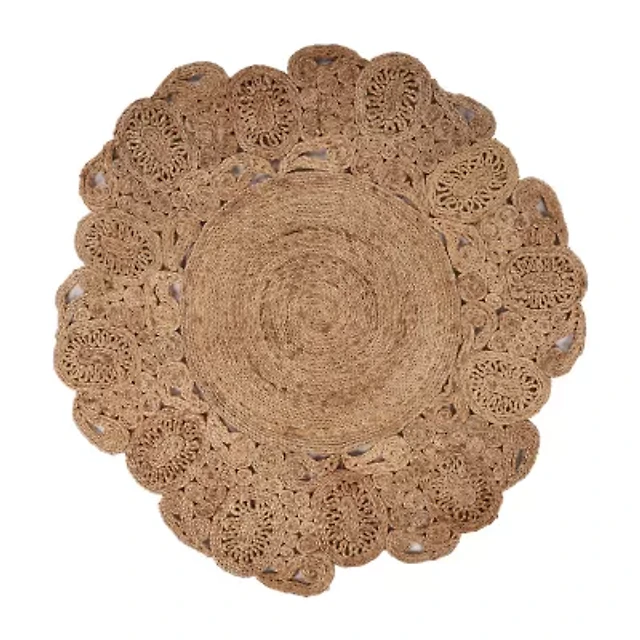 Halen Dia Geometric Braided Stain Resistant Indoor Round Accent Rug