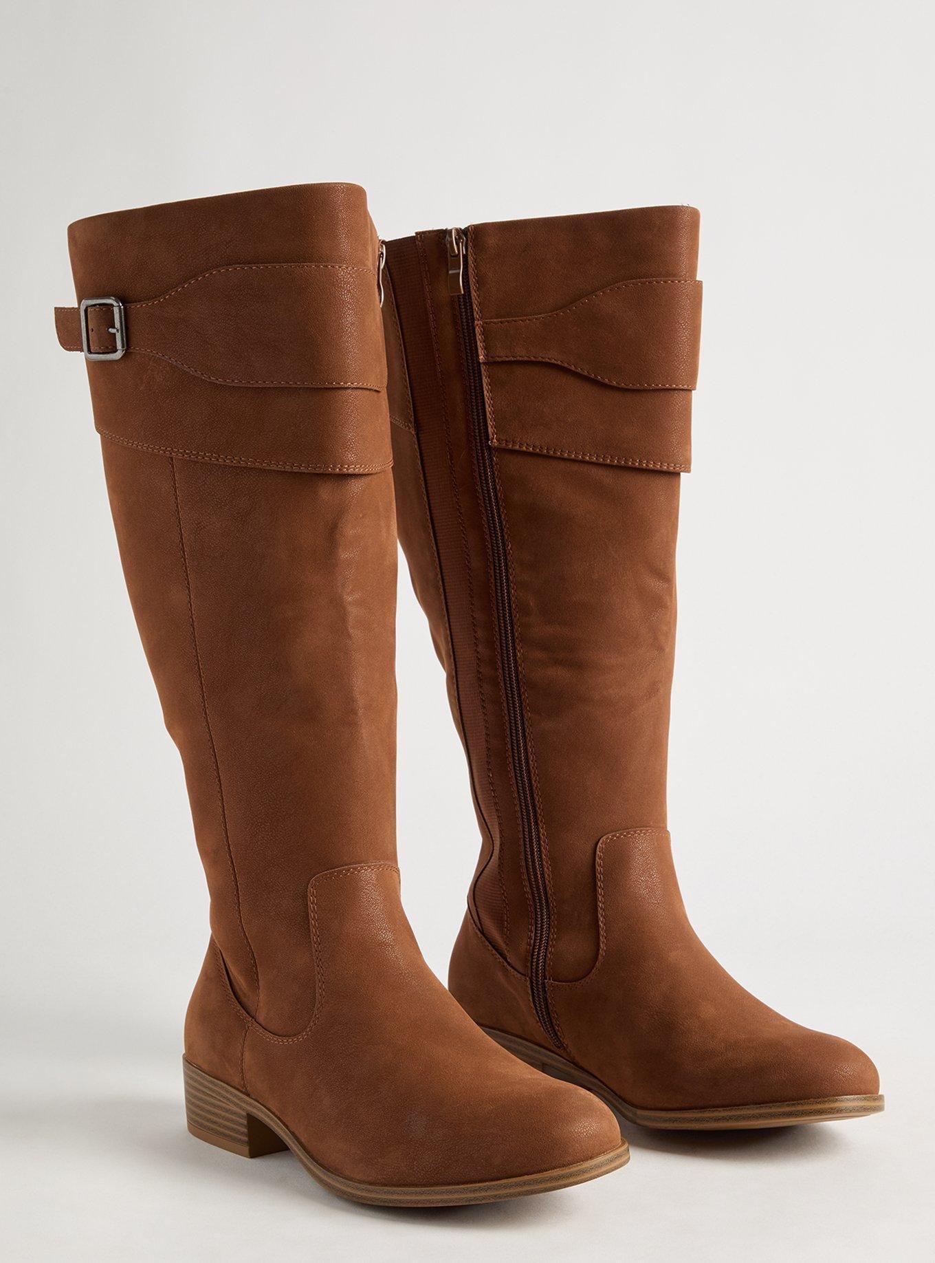 Lug Stacked Heel Buckle Knee Boot (WW)