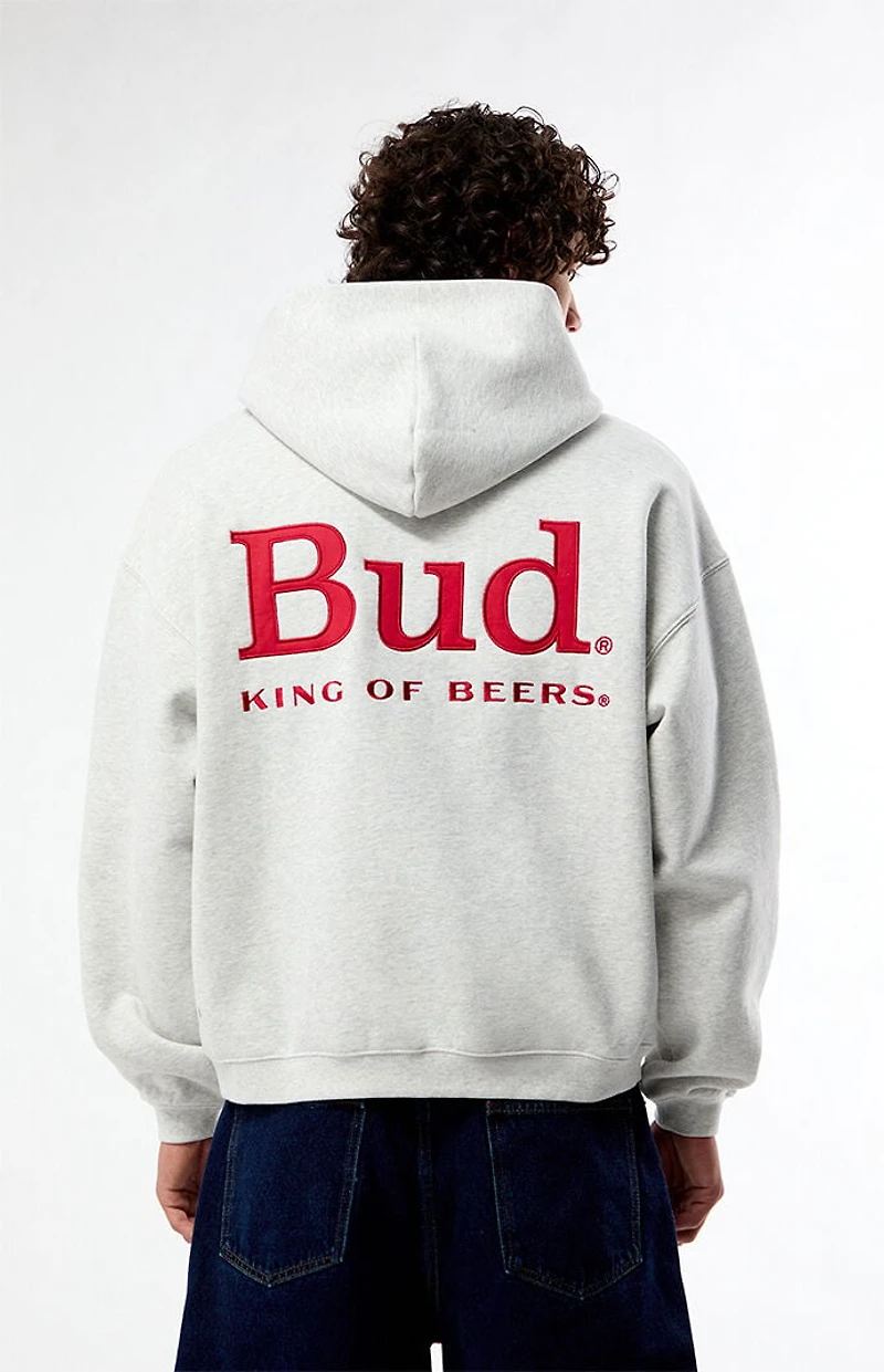 The Budweiser by Pacsun Paisley Zip Up Hoodie adds a bold twist to your everyday layer. Designed with an attached hood and bandana front tie closure, it features a full-zip front, long sleeves, side hand pockets, a Bud “King of Beers” back applique, and ribbed cuffs and hem for a clean finish.