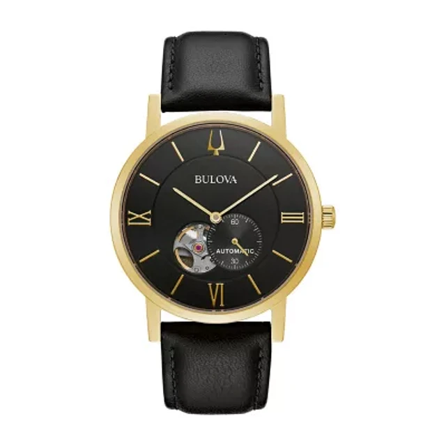 Bulova Automatic Mens Automatic Black Leather Strap Watch 96a310