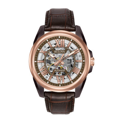 Bulova Automatic Mens Brown Strap Watch 98a165
