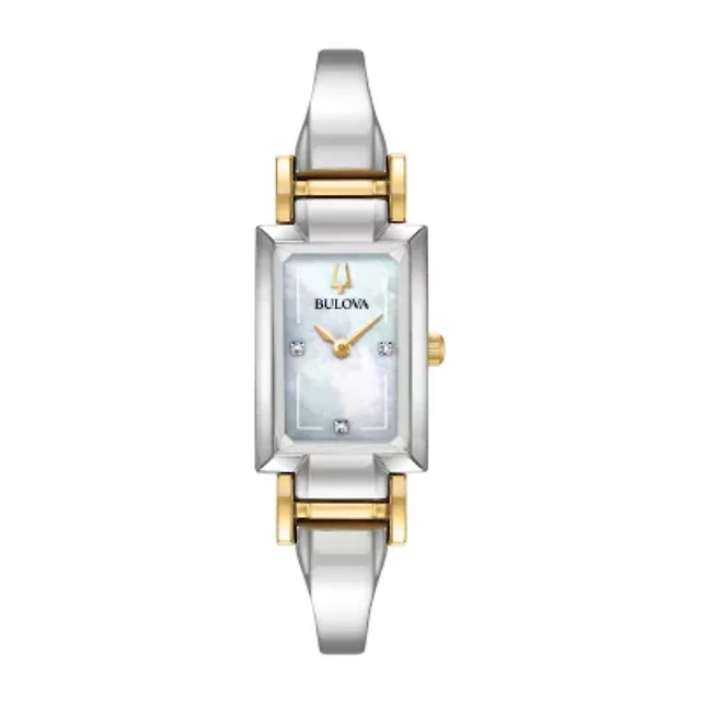 Bulova Modern Gemini Womens Diamond Accent Two Tone Stainless Steel Bangle Watch 98p218