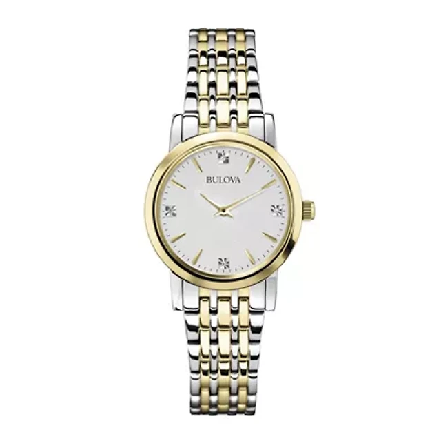 Bulova Classic Womens Diamond Accent Two Tone Stainless Steel Bracelet Watch 98p202