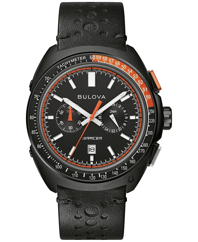 Bulova Men's Chronograph Racer Black Leather Strap Watch 42mm
