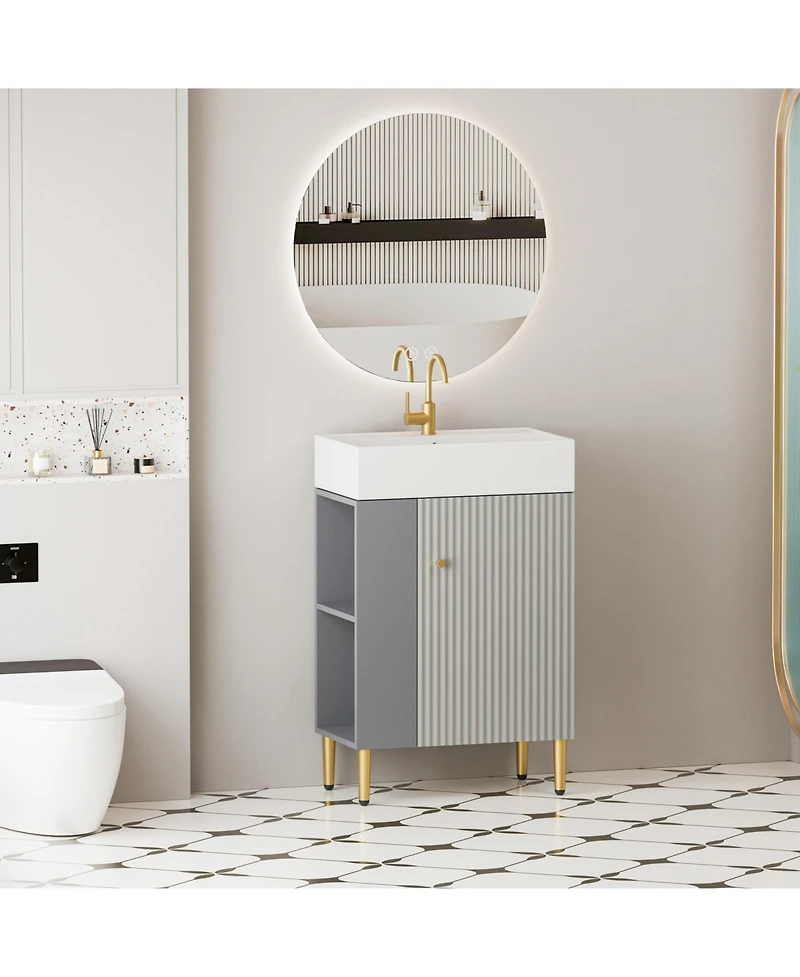 Busdays 21.6 Inch Open Shelving Bathroom Vanity with Ceramic Sink Soft Close Door Cloakroom Storage Cabinet Left Side Grey Finish Assembly Required in San Juan, PR