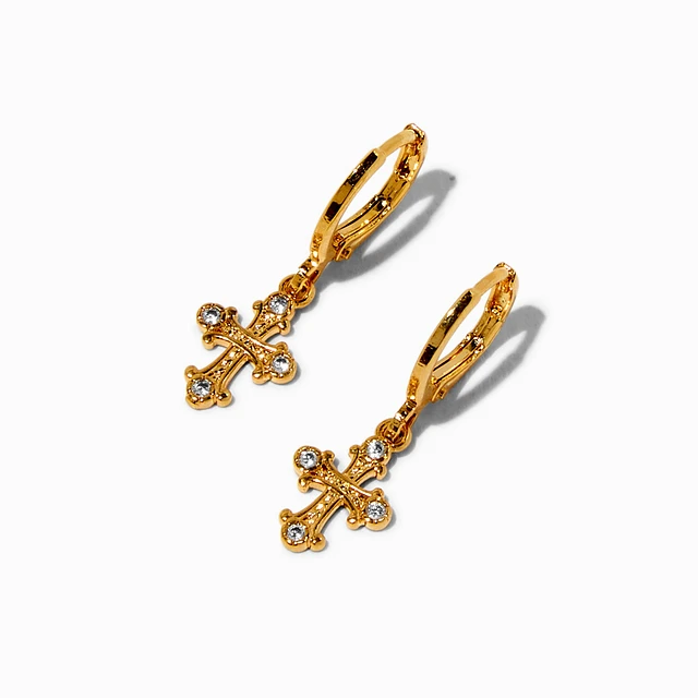 C LUXE by Claire's 18k Yellow Gold Plated Cubic Zirconia Ornate Cross Hoop Earrings