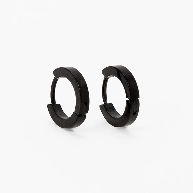 C LUXE by Claire's Black Titanium 8mm Clicker Hoop Earrings