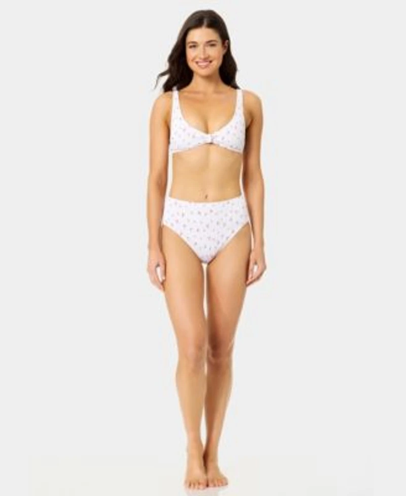 California Waves Womens Mini Cherry Smocked Knot Swim Bralette High Waist Bottoms