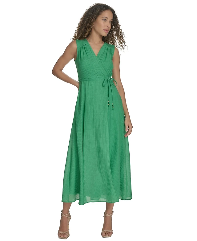 Calvin Klein Women's Faux-Wrap Sleeveless Midi Dress
