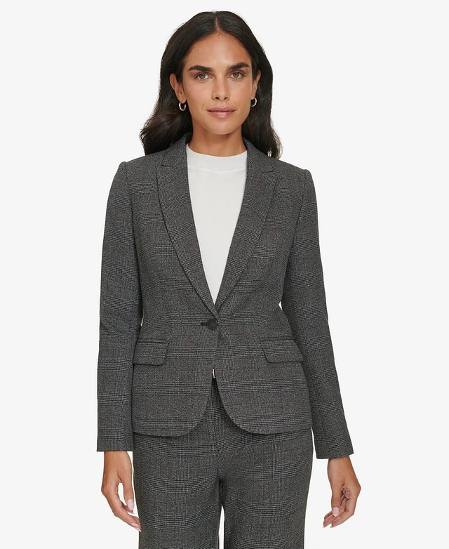 Calvin Klein Women's One-Button Glen Plaid Blazer