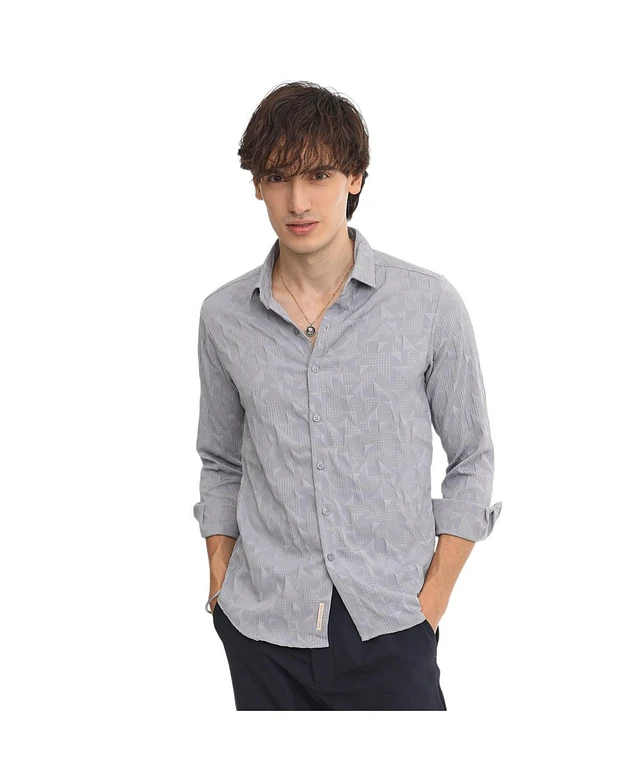 Campus Sutra Men's Ash Grey Geometric-Texture Shirt