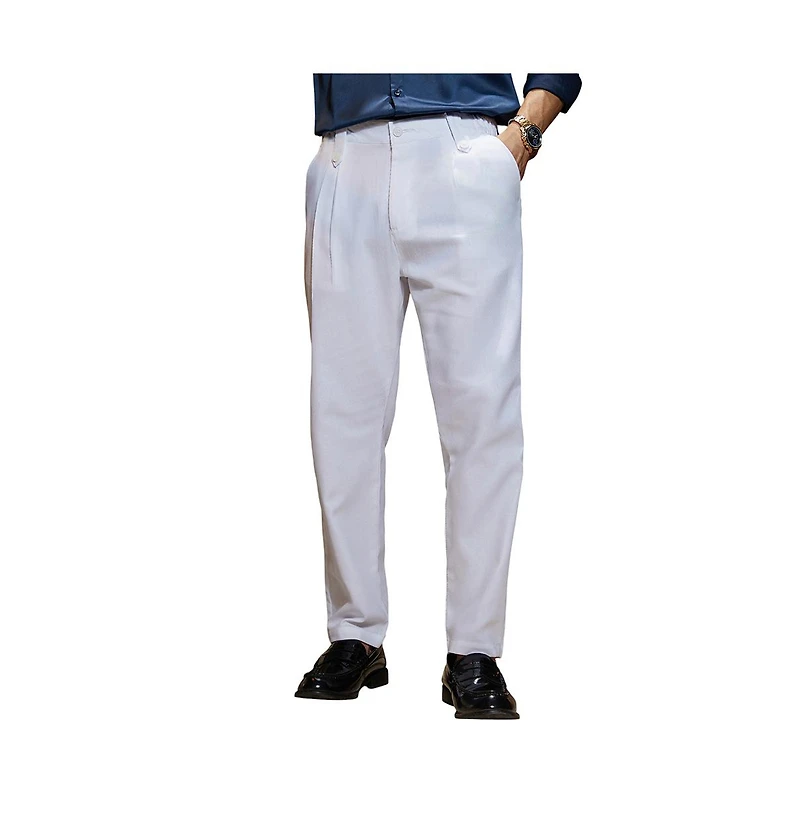 Campus Sutra Men's Cream White Ribbed-Pleated Chino Trousers