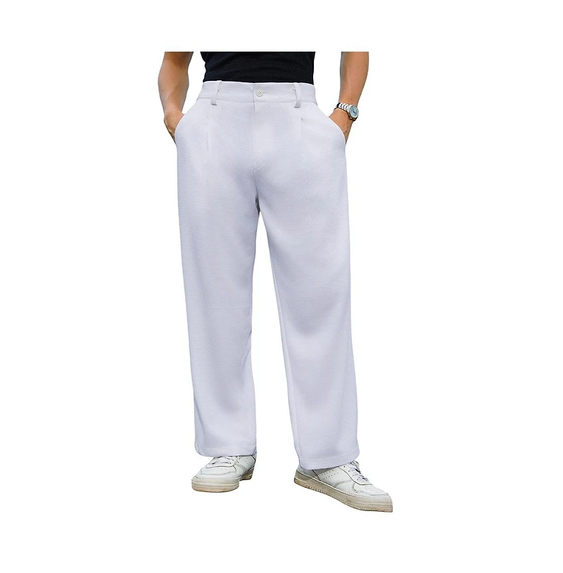 Campus Sutra Men's Cream White Straight-Fit Ribbed Trousers