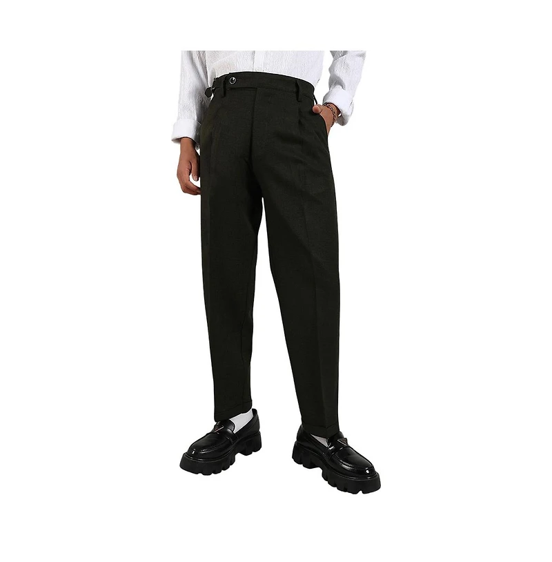 Campus Sutra Men's Juniper Green Tailored Linen-Blend Trousers For Casual Wear | Tailored-Fit | Mid-Rise | Button Closure | Trousers Crafted With Comfort Fit For Everyday Wear