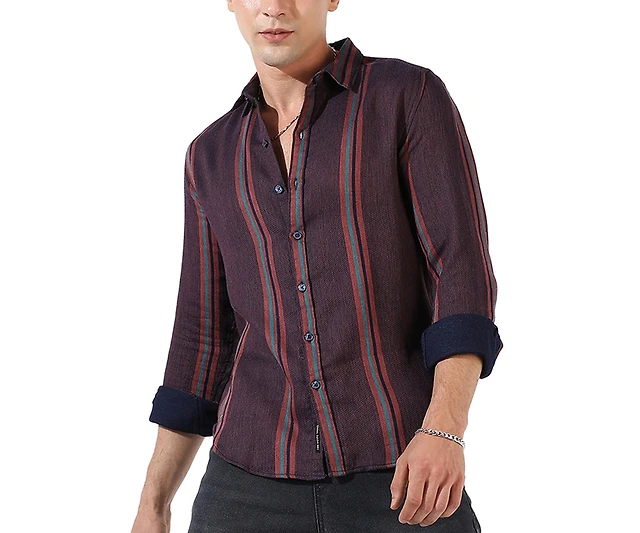 Campus Sutra Men's Maroon Striped Regular Fit Casual Shirt