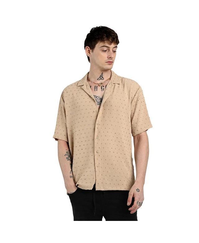 Campus Sutra Men's Ecru Beige & Midnight Black Withering Flora Imprint Shirt
