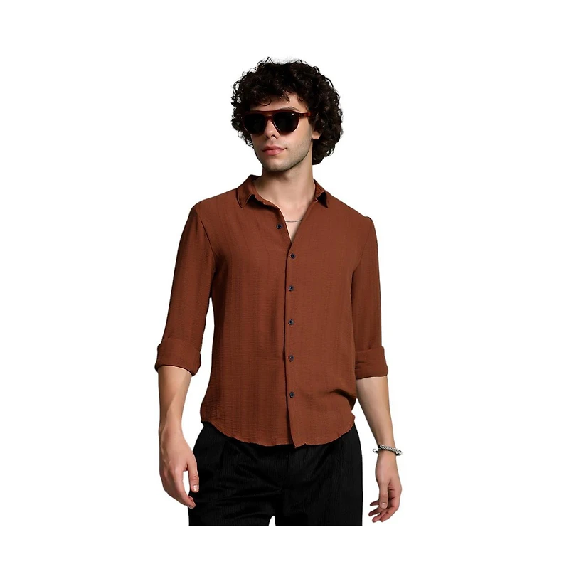 Campus Sutra Men's Sienna Brown Woven-Lined Shirt