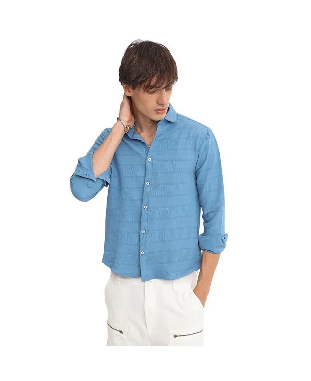 Campus Sutra Men's Sky Blue Chevron-Textured Shirt