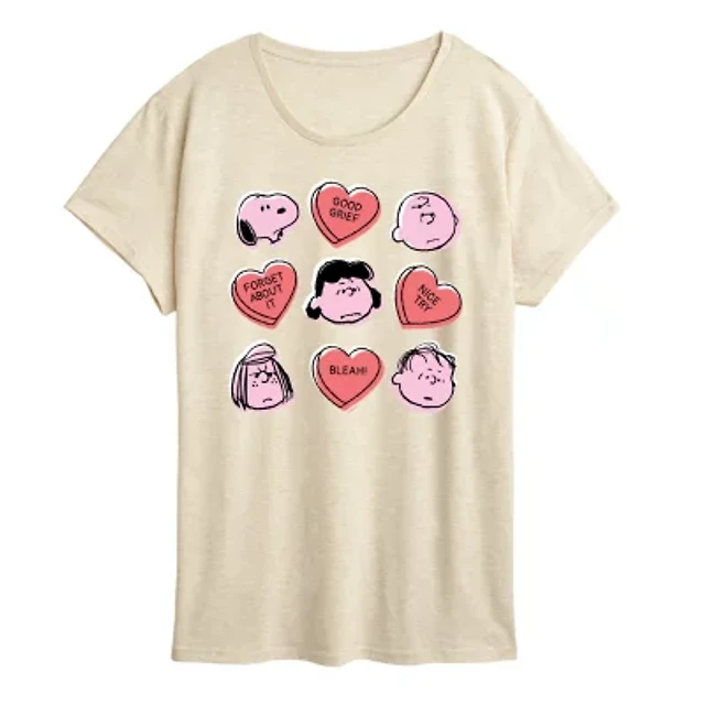 Candy Heart Grid Womens Crew Neck Short Sleeve Classic Fit Peanuts Graphic T-Shirt