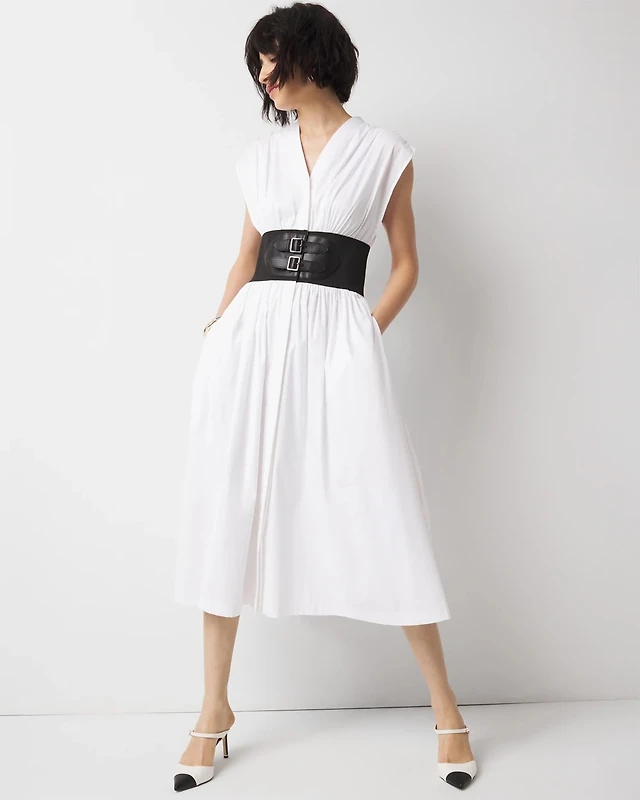 Petite Sleeveless Tie-Waist Pleated Midi Dress
