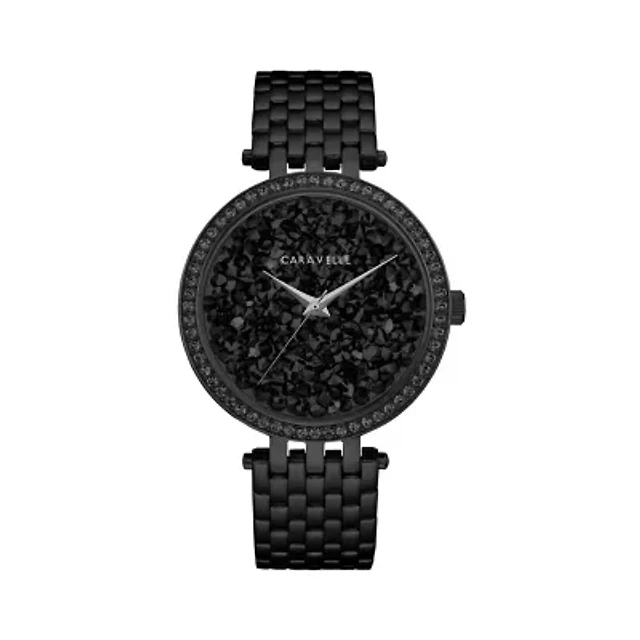 Caravelle Designed By Bulova Womens Crystal Accent Black Stainless Steel Bracelet Watch 45l171