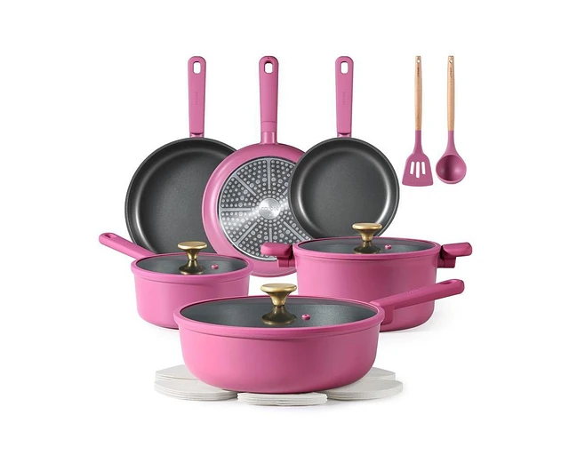 Carote 16pcs Nonstick Cookware set, Pots and Pans, Premium Induction Cookware, Durable & Easy to Clean, Large Frying Pan, Rose Pink