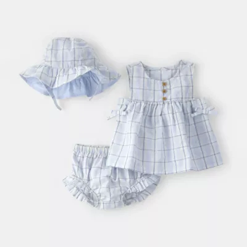 This charming three-piece set is perfect for sunny adventures and playful outings. The lightweight fabric ensures all-day comfort, while the stylish plaid pattern keeps your little one looking fresh and trendy. With easy-to-use buttons on the dress and a matching sun hat for extra protection, dressing is a breeze for busy parents. The ruffled shorts add a delightful touch, making this ensemble ideal for everything from picnics in the park to family gatherings. Embrace summer days with a look that combines fun and functionality.