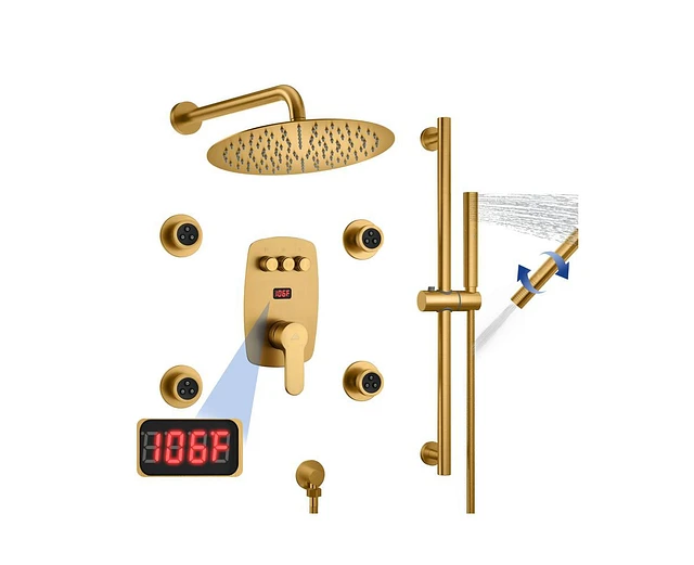 Casainc 3-Function 12 Inch Temperature Digital Display Shower System With 2-Setting Slider Bar Handheld And 4Pcs Body Jets