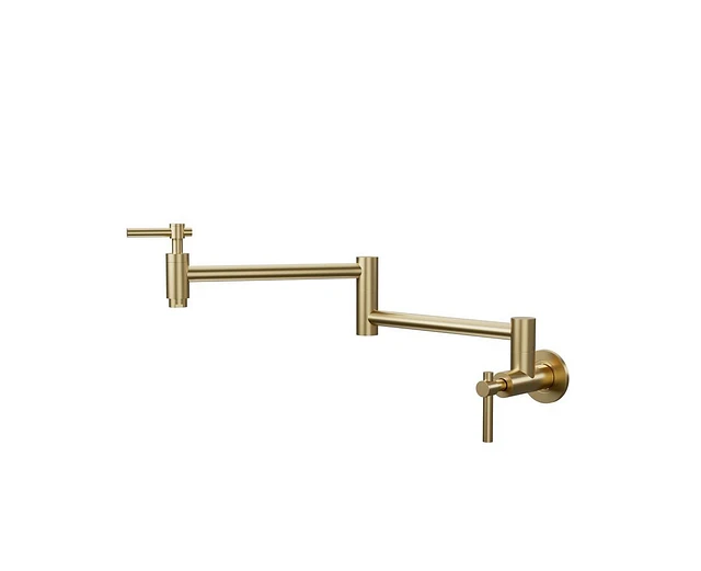 Greenspring Wall Mount Pot Filler Faucet Double Handle Folding Kitchen Restaurant Sink With Dual Joint Swing Arm Commercial In Gold