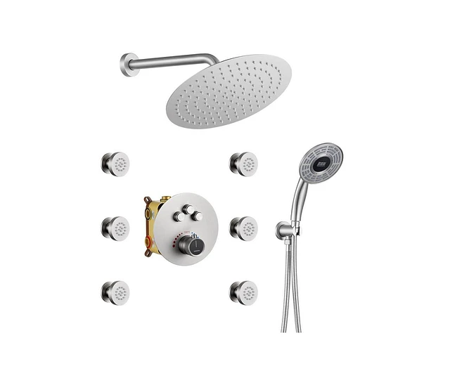 Casainc 3 Functions 12 Inch Wall Mount Thermostatic Shower System with 6 Body Jets