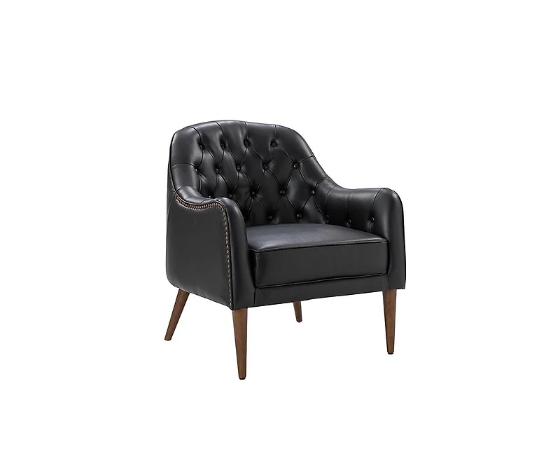 Indulge in this genuine leather barrel chair, a piece that marries craftsmanship with comfort. Its regal presence is magnified by the tufted back, evoking the grace of classic Chesterfield designs. Supported by solid wood legs, this accent chair's robust structure guarantees unwavering stability and enduring elegance. Versatility takes center stage as this accent chair effortlessly enhances multiple settings, serving as a captivating office chair, a refined vanity chair, a cozy living room companion, a tranquil reading nook, or a lavish bedroom addition. Immerse yourself in the allure of the barrel shape, which embraces you with a rounded back and a deep circular cutout, promising relaxation. Wrapped in genuine leather, experience peace of mind with its water-proof, anti-fouling, and mildew-proof properties, making maintenance a breeze. Elevate your surroundings with this impeccable blend of style and practicality that captures the essence of refined living.