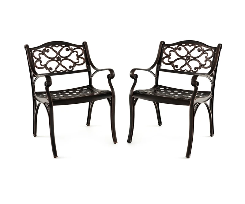 Cast Aluminum Dining Chairs Set of 2 with Patio Chairs Armrests Flower Pattern