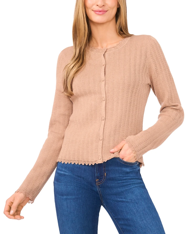 CeCe Women's Button Front Long Sleeve Cardigan Sweater