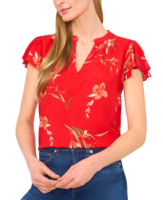 CeCe Women's Floral Print Flutter-Sleeve Blouse