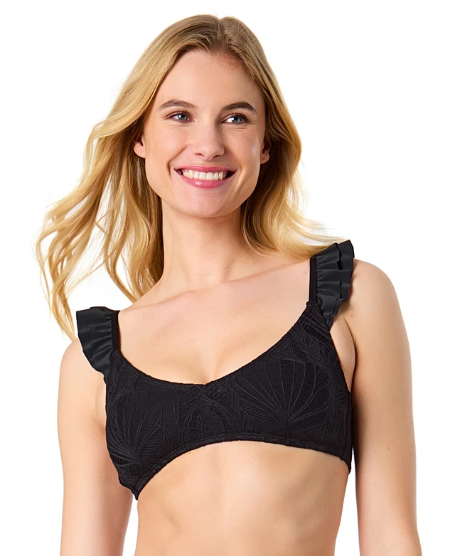 CeCe Women's La Vie A Mer Textured Ruffle Strap Bikini Top