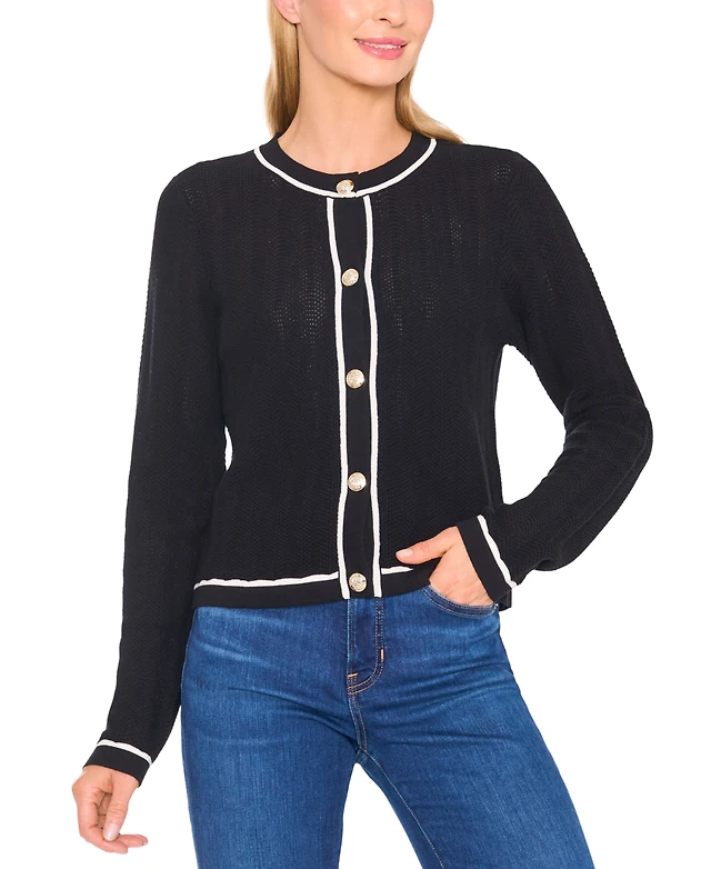 CeCe Women's Long-Sleeve Cardigan With Contrast Trim