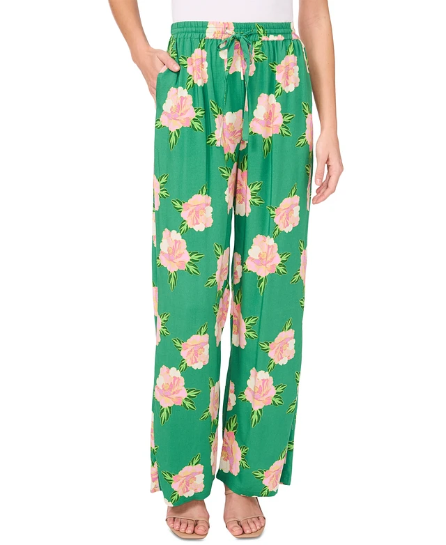 CeCe Women's Printed Pull-On Wide-Leg Pants