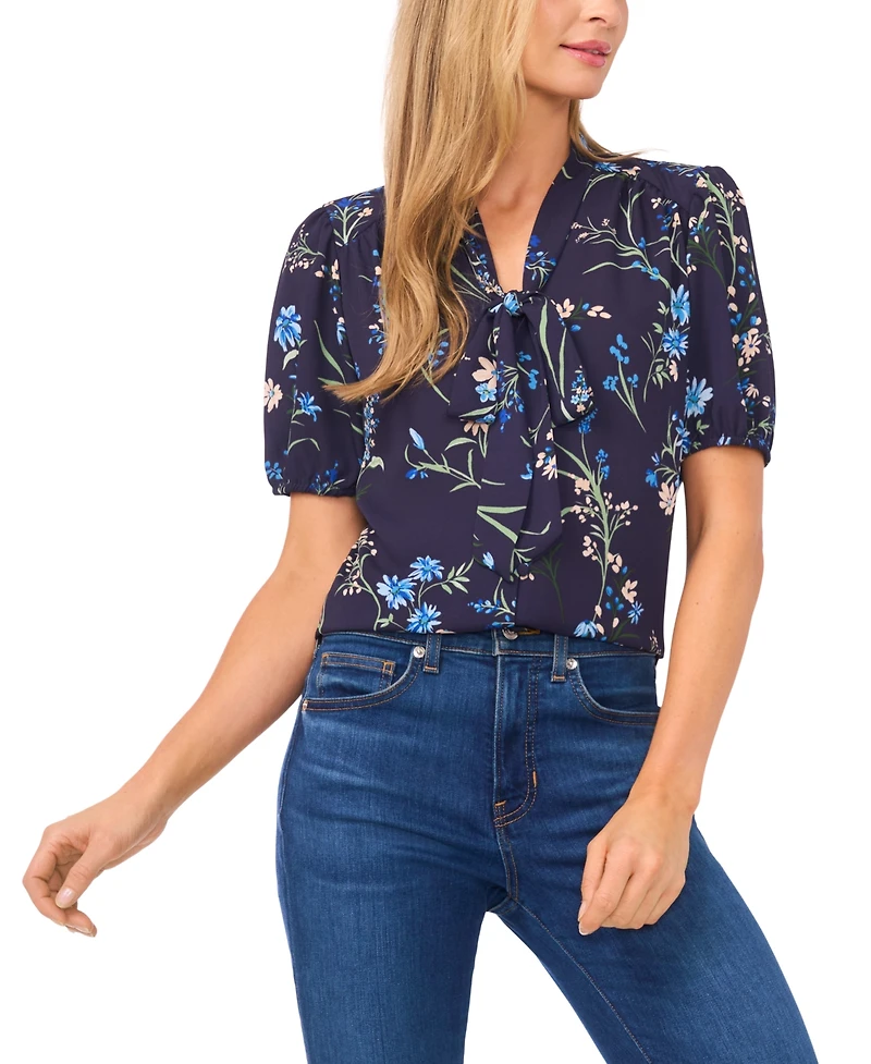 CeCe Women's Short-Sleeve Bow Tie Shirred Top