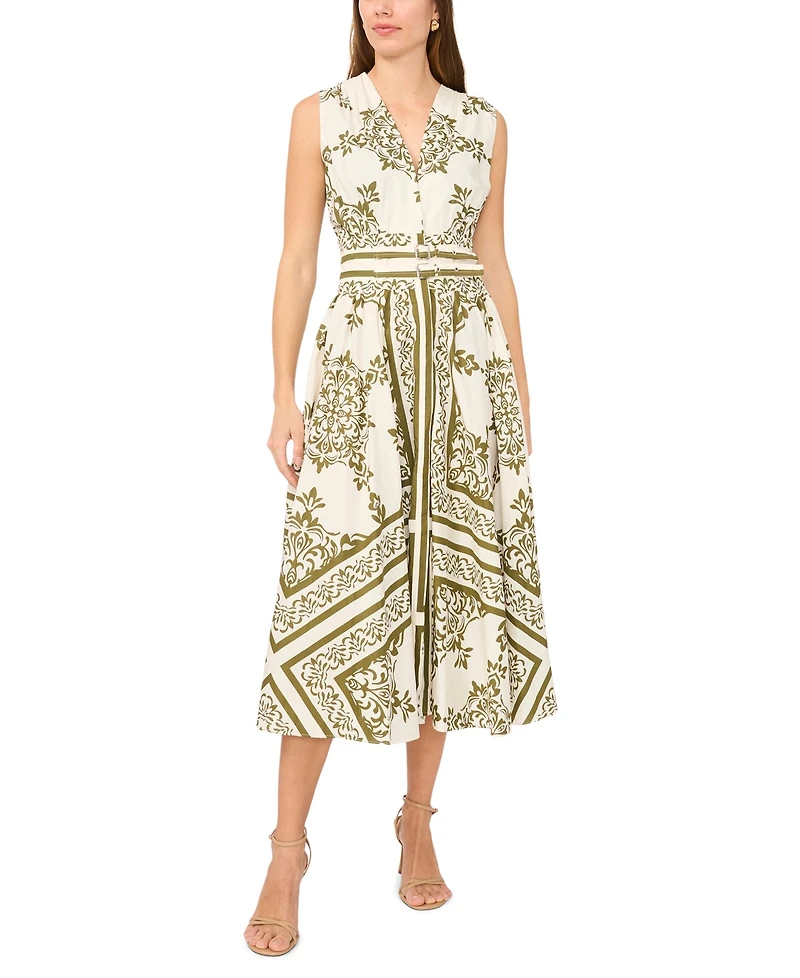 CeCe Women's Sleeveless V-Neck Buckle Trim Midi Dress
