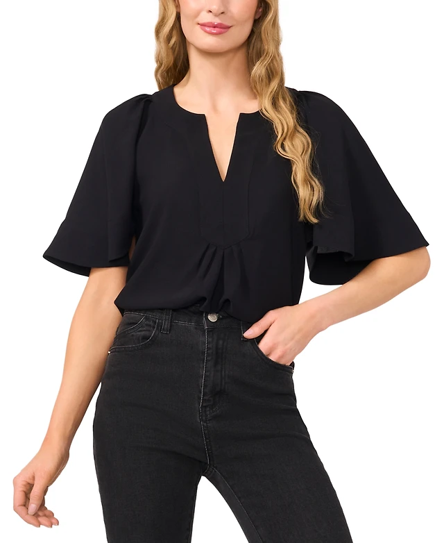 CeCe Women's Split-Neck Flutter-Sleeve Top