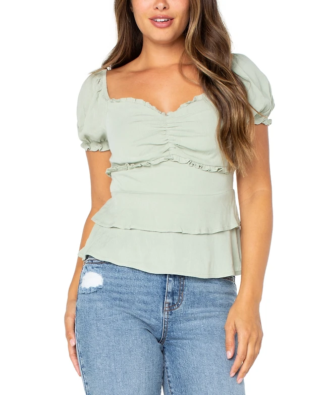 Celebrity Pink Juniors' Tiered Puff-Sleeve Top