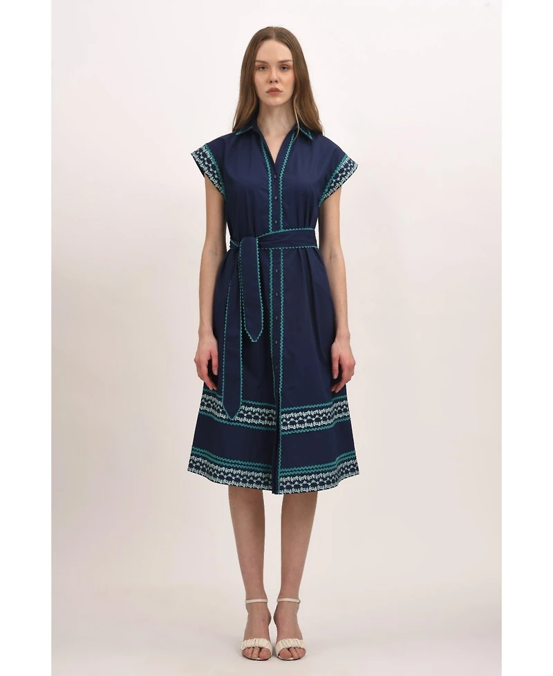 This Thalia Midi Shirt dress features contrast piping and a defined waist belt for a structured yet feminine look. Perfect for day-to-evening wear, it blends polish and ease in equal measure.